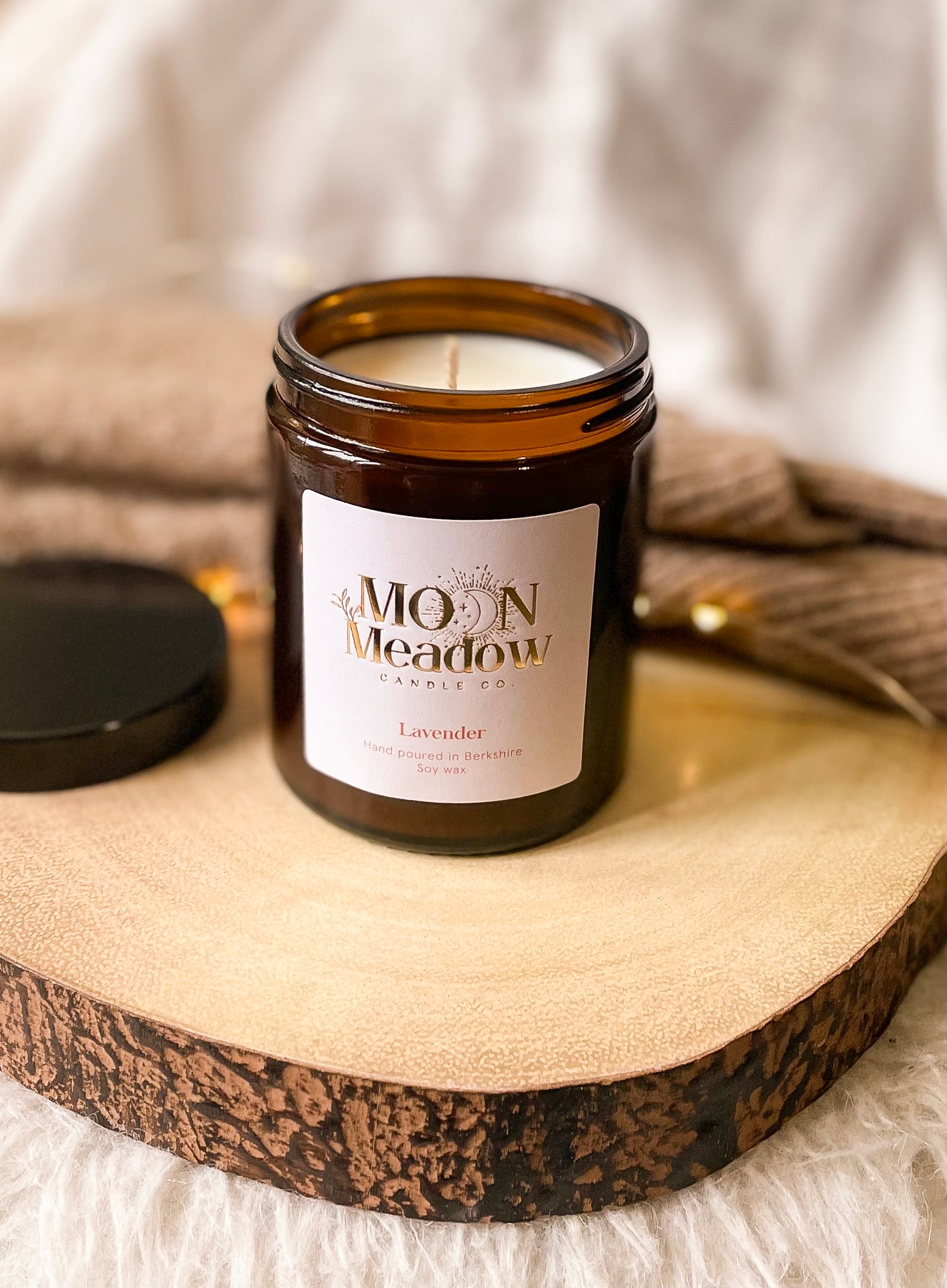 Our beautiful amber jars create a relaxing glow while the candle burns. We recommend once your finished with the candles to re use the jars.