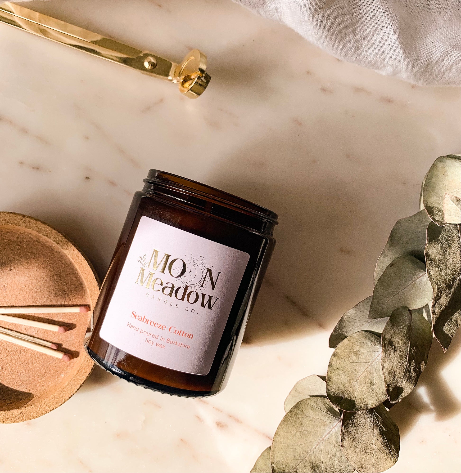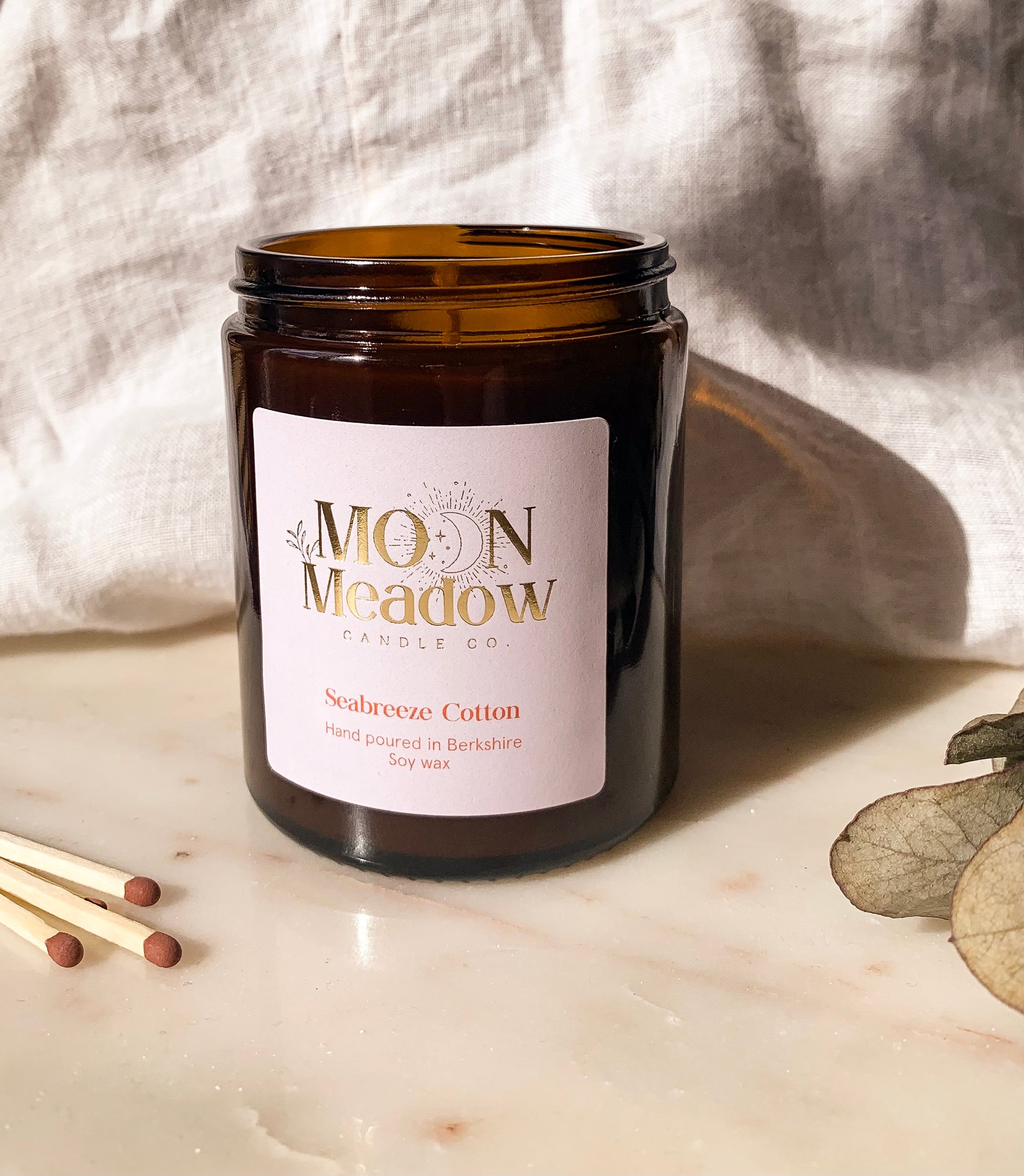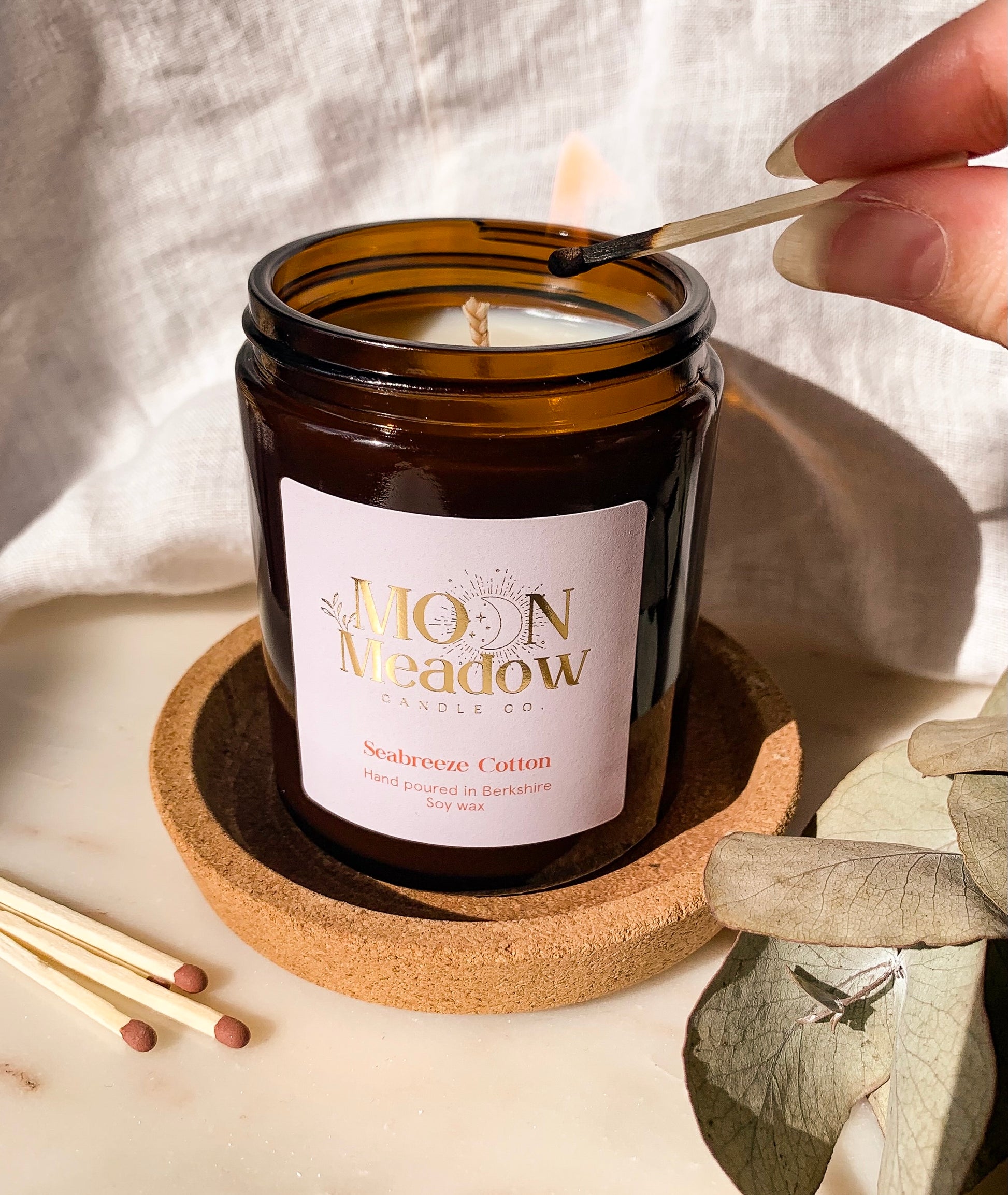 Our beautiful amber jars create a relaxing glow while the candle burns. We recommend once your finished with the candles to re use the jars.