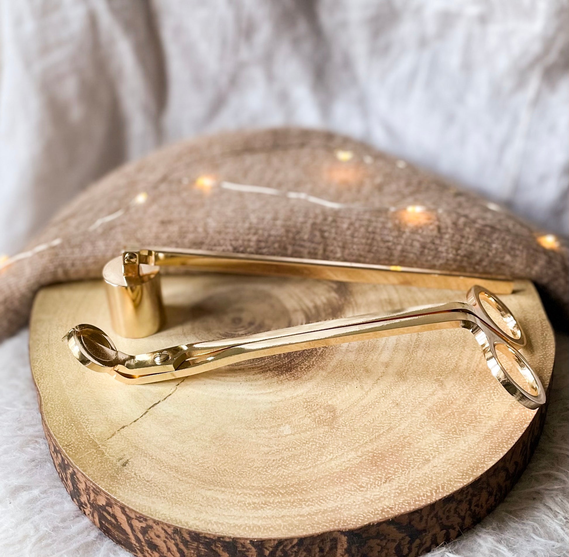 Stainless steel gold coloured wick trimmer and wick snuffer set. **candle not included**
